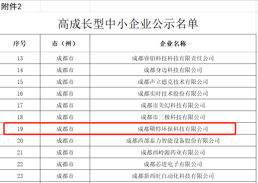 12月24日,由四川省經濟和信息化廳組織的2020年度重點中小企業(yè)申報工作評選結束,成都碩特環(huán)??萍加邢薰就ㄟ^復核,進入高成長型中小企業(yè)公示名單。