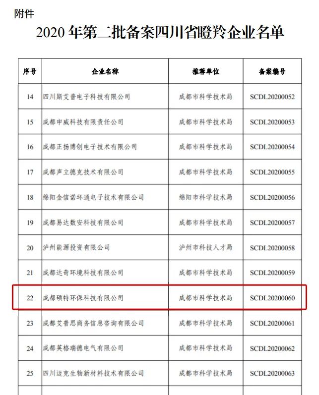 【喜報(bào)】碩特環(huán)保成功備案為四川省瞪羚企業(yè)